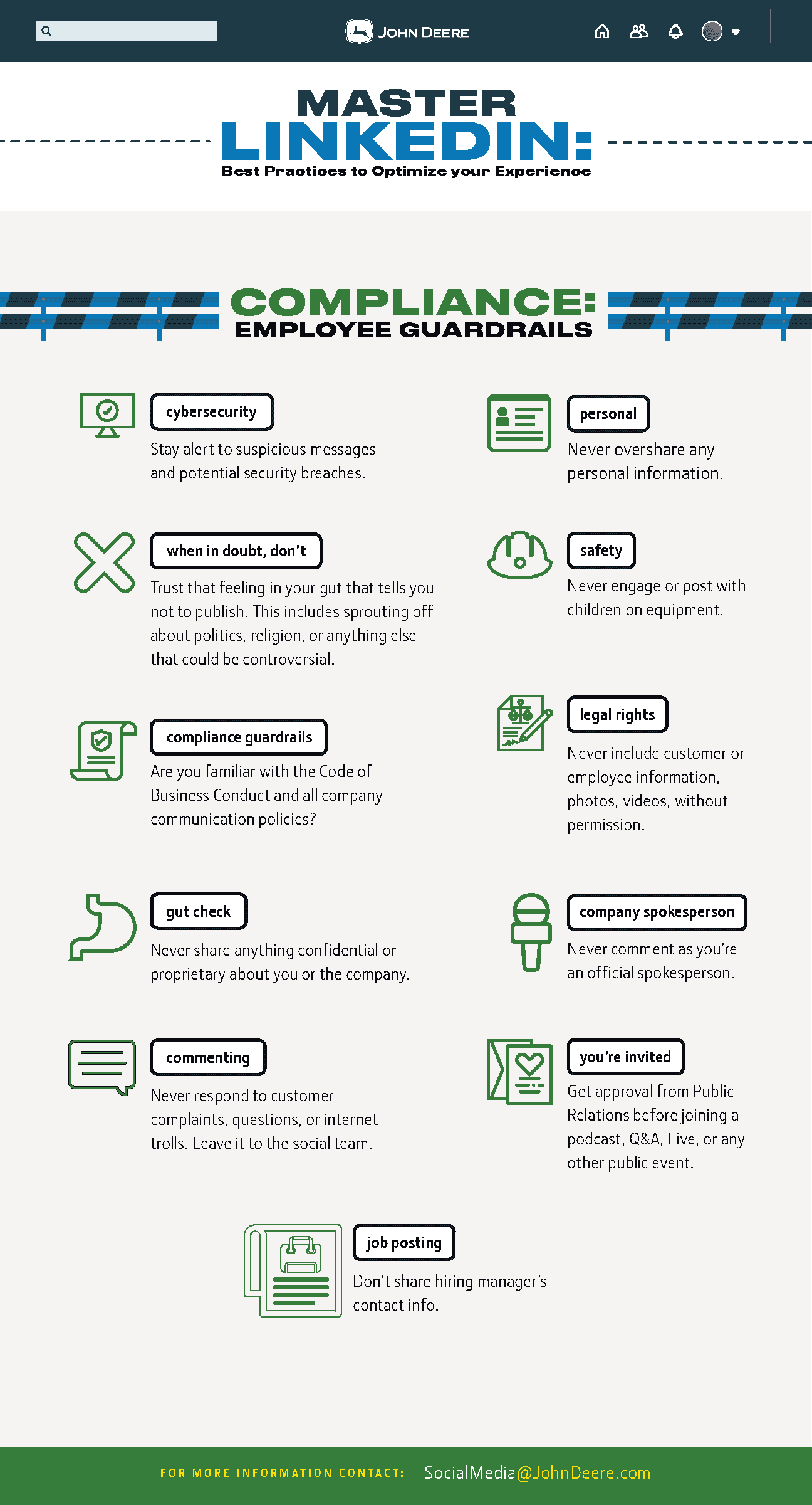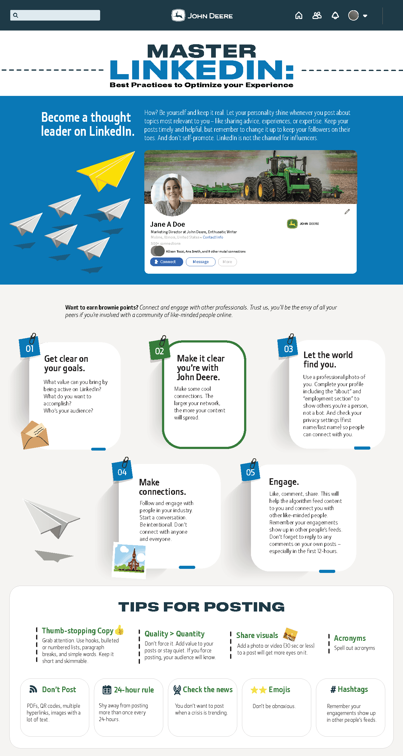 John Deere asked for a guide for internal use, to give to their employees about their LinkedIn profile guide.