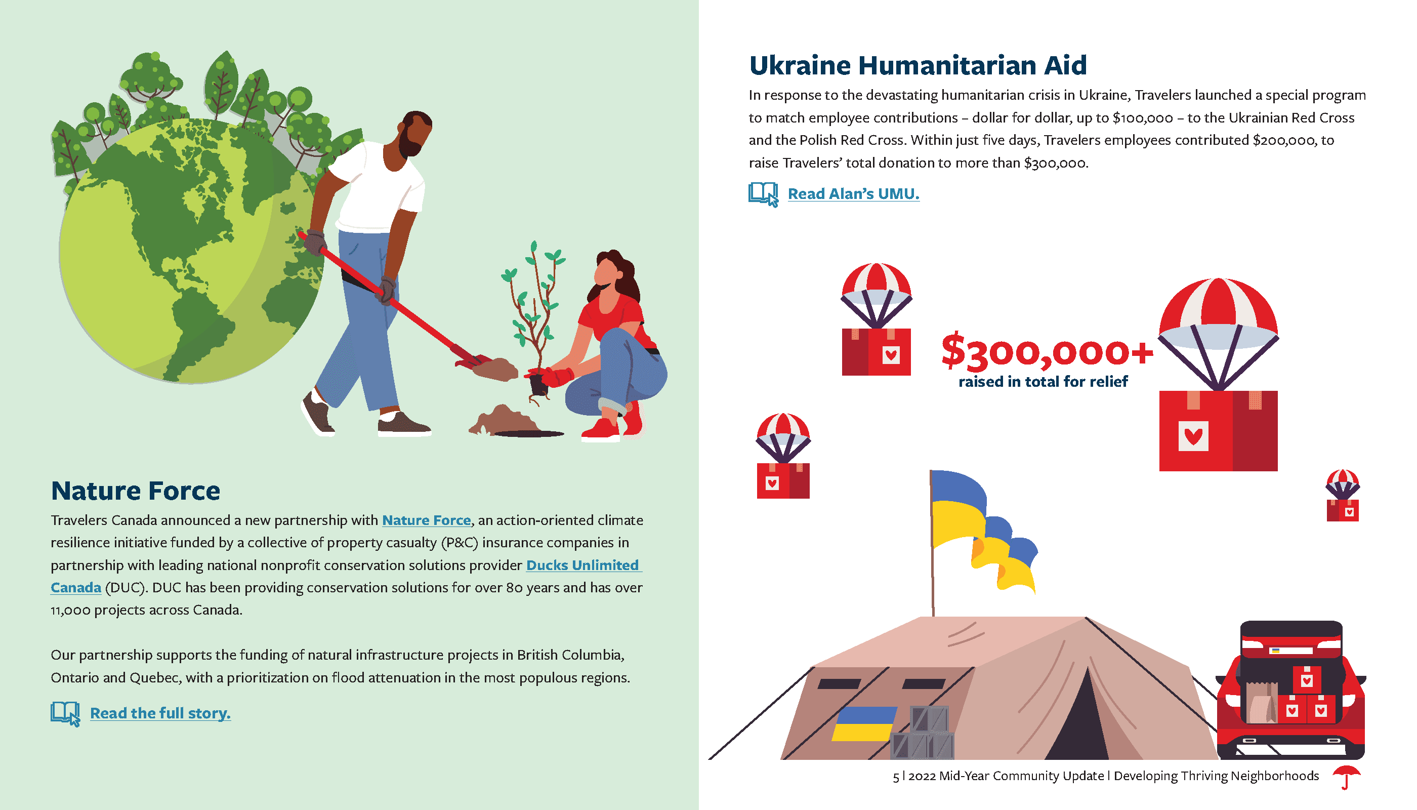 A internal community update made to show employees what Travelers employees and the company had been up to over the last 6 months,